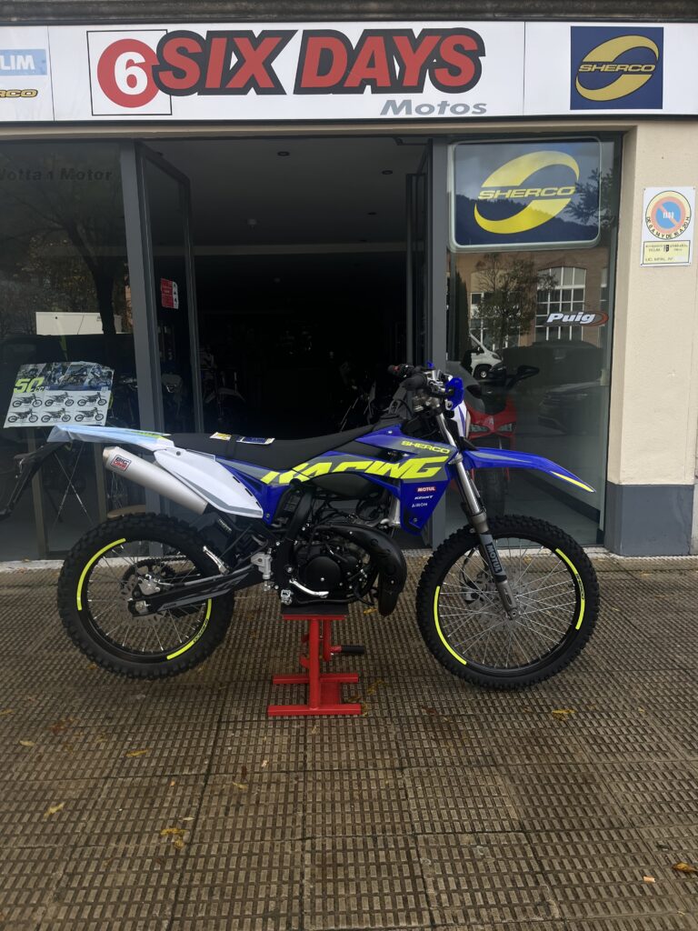 Motocicleta Sherco SE R 50 Factory, para los mas jovenes que empiezan tienen una moto fiable y con buenos componentes que hará sus delicias. El modelo ofrece la estética rompedora de las motos de enduro, horquilla convencional , parámanos y los neumáticos para un mejor agarre en campo.